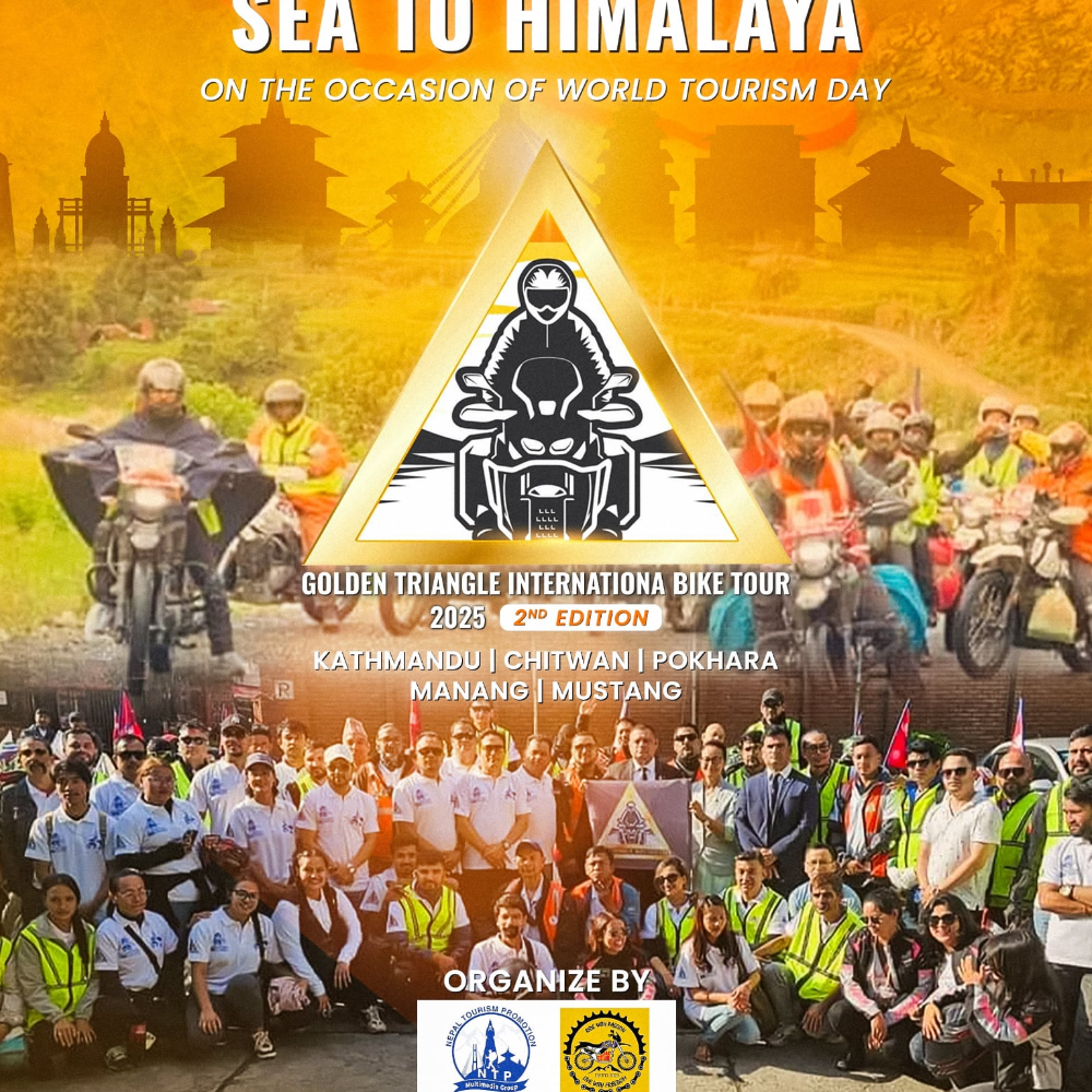 काठमाडौँ। अन्तर्राष्ट्रिय पर्यटन दिवसका अवसरमा गरिने गोल्डेन ट्रयाङ्गल बाइक टूर यस वर्षदेखि अन्तर्राष्ट्रिस्तरको हुने भएको छ । टूरमा सहभागी हुन पहिलोपटक बंगलादेश र भारतबाट राइडरहरु काठमाडौँ आउँदैछन् ।
