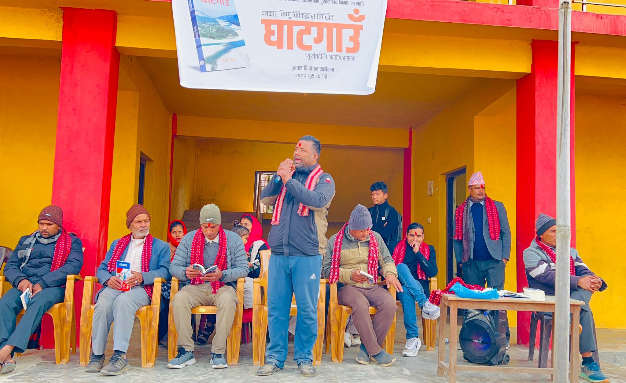 कार्यक्रमका प्रमुख अतिथी चौकुने गाउँपालिकाका अध्यक्ष खड्ग विश्वकर्मा विवश, सरस्वती माविका विद्यालय व्यवस्थापन समितिका अध्यक्ष जनक रावल, स्कूलका प्रधानाध्यापक हरिनारायण चौधरी, शिक्षक भीमबहादुर विश्वकर्मा, शिक्षक नवराज भण्डारी लगायतले ‘घाटगाउँ’ पुस्तक विमोचन गरेका हु्न् ।