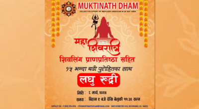 काठमाडौँ – अमेरिकास्थित क्यालिफोर्नियामा रहेको मुक्तिनाथधाममा फागुन २५ गते लघु रुद्री हुने भएको छ ।