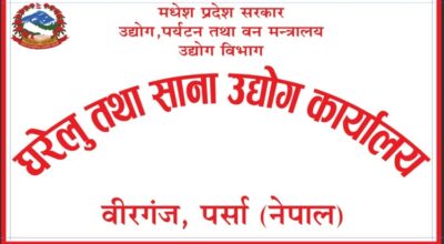 पर्सामा तीन वर्षयता घरेलु तथा साना उद्योगको नयाँ दर्ता घट्यो