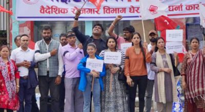 आईटी आर्मीको आन्दोलनको आज ८औं दिन, हातमा कालोपट्टी बाँधेर वैदेशिक रोजगार विभागमा घेराउ