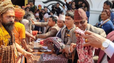 पशुपतिनाथ दर्शनका लागि आएका साधुसन्तलाई बिदाई गरिँदै