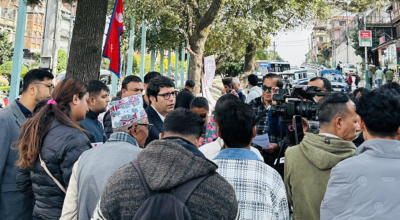 हवाई भाडा नियन्त्रणको माग गर्दै सांसद बजगाईंको नेतृत्वमा प्रदर्शन