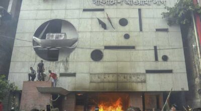 बङ्गलादेशमा हसिनाको दल अवामी लिगको केन्द्रीय कार्यालय तोडफोडपछि आगजनी