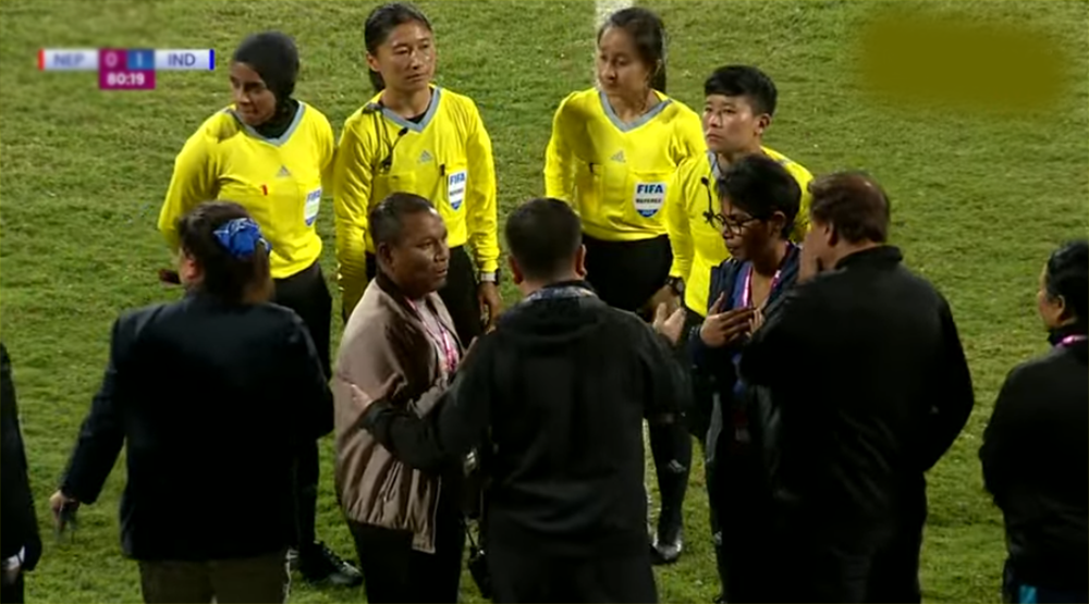 रेफ्रीले नेपालको गोल दिन अस्वीकार गरेपछि तनाव, खेल अवरुद्ध
