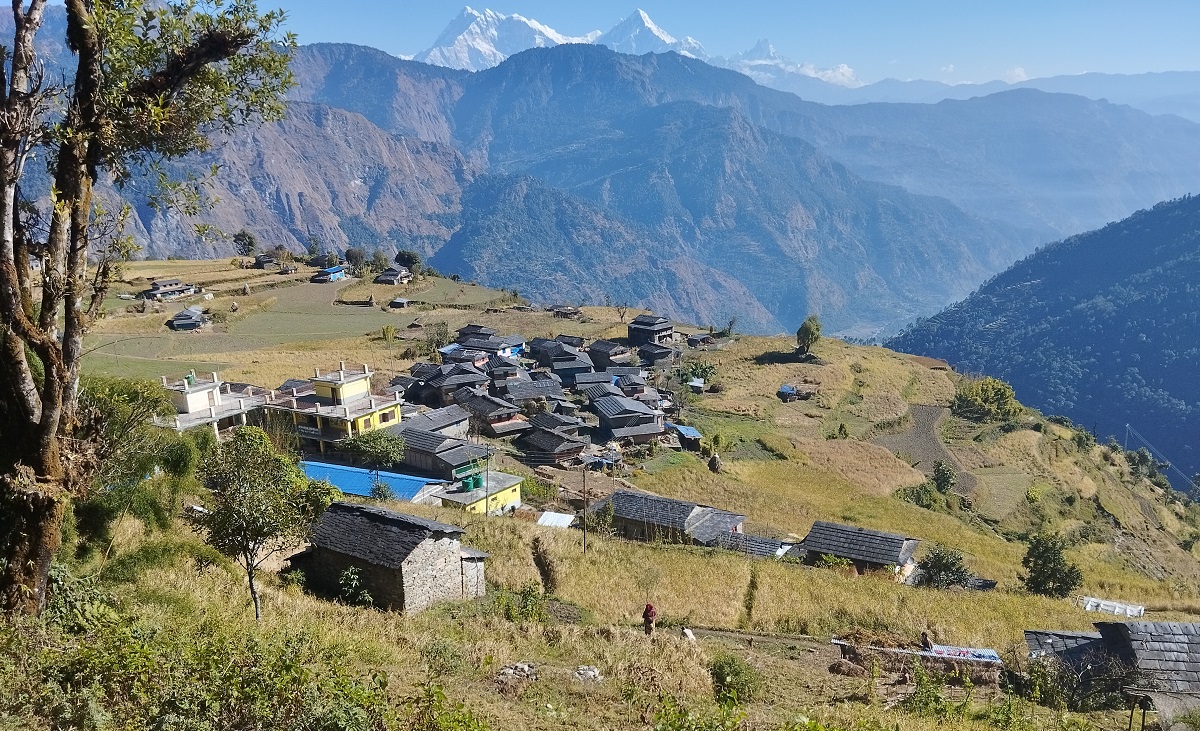 म्याग्दी-चिटिक्क परेका ढुङ्गे घर । फराकिला आँगन । गाउँको बीचैमा सुविधासम्पन्न मोटरबाटो । गाउँकै मुनि…
