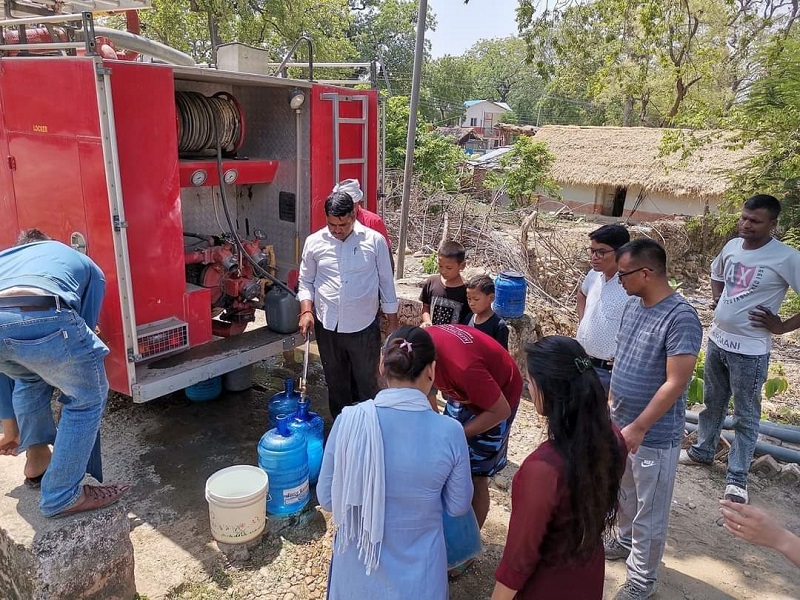 पानीका स्रोत सुकेपछि दमकलले पानी वितरण गरिँदै